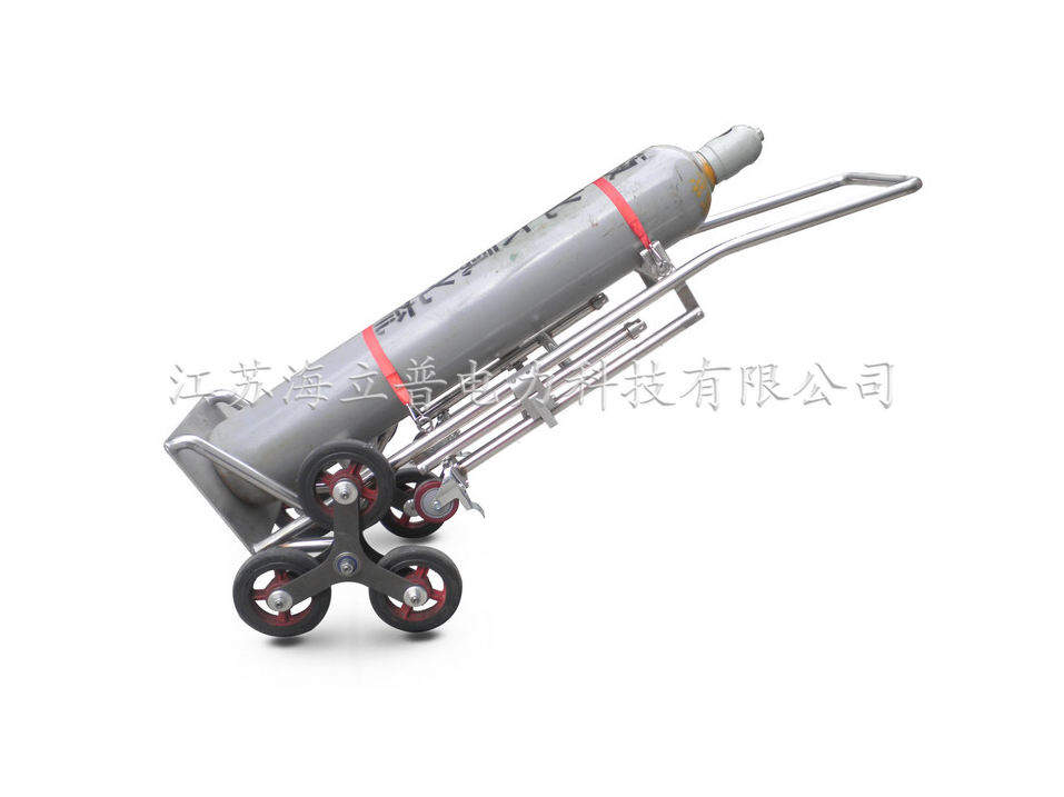 HNPXL-100型旋轆式爬樓梯車是一款針對現場臺階和碎石路較多的鋼瓶搬運車,可旋式三幅聚酯尼龍輪胎能輕松應對高度200mm以內的任意凹凸地面。